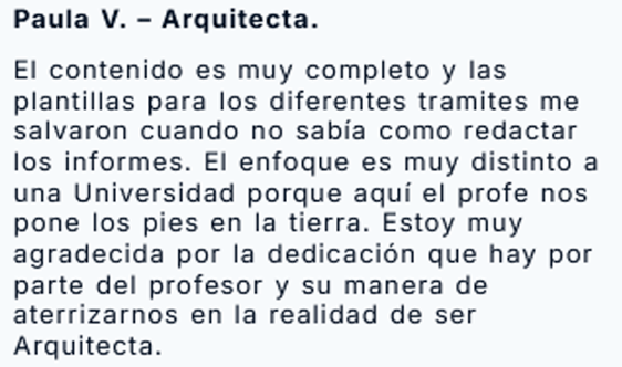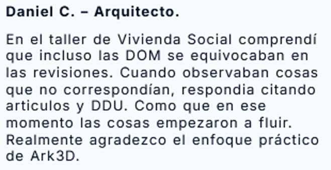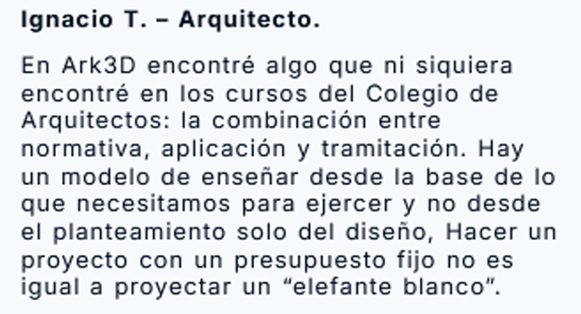A través de Ark3D ha formado a cientos de profesionales que buscan completar su formación en normativa urbanística aplicada al ejercicio real de la profesión, más allá de la teoría universitaria.