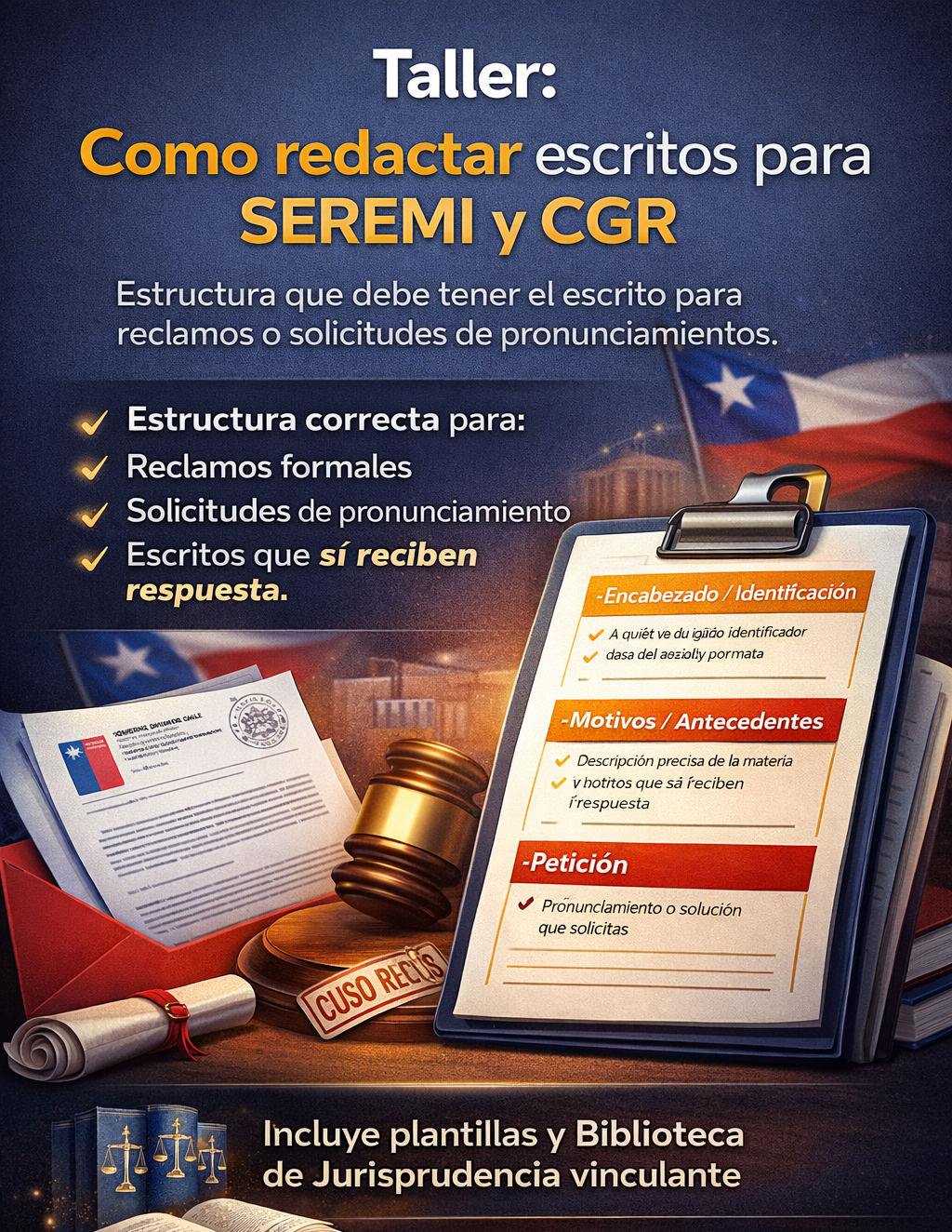 En el Taller: Cómo redactar escritos para SEREMI y CGR aprendes: